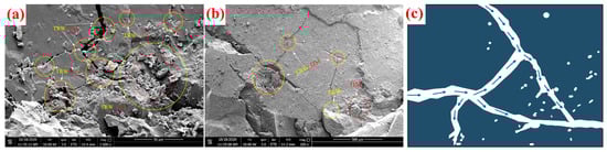 Considering that the mechanism of the small-scale outbursts occurred in the top mylonitic coal layer during the excavation, secondary outburst prevention should effectively mitigate the outburst-prone risk in the top layer. The high-pressure CO2-Frac generates two sets of fracture system: the first is the radial long-fracture system dispersing in the whole coal seam [31,32], including the top mylonitic layer (Figure 9). Additionally, there is the nm-to-μm-scale micro-fractures network formed by multiple tri-wing fractures that disperses in the coal matrix (Figure 10) [26]. The two sets of fracture system built complex gas migration highways in the coal that significantly enhance gas desorption and releasing out of the coal seam, and which finally result in gas content dropping low. Thereby, the outburst mitigation mechanisms of CO2-Frac in this study are described as follows: the complex artificial fracture system induced by CO2-Frac in coal effectively enhanced pressure relief, increased permeability, quickened gas emission, further reduced gas content, and finally eliminated outburst-prone risk.