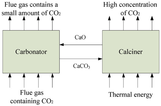 CCUS refers to the capture or separation of carbon dioxide from the emissions during industrial processes or energy production and the following utilization or transportation to appropriate sites for storage. In the carbon capture process, due to the low cost, widely available sources and considerable adsorption capacity, the carbonation reaction of calcium-based adsorbents, such as CaO absorpting CO2 and the calcination reaction of CaCO3, which could be circularly used, is a feasible technical route [4,5,6,7]. A calcium looping process can also be applied to many aspects, such as hydrogen production from natural gas using steam reforming, hydrogen production by biomass gasification, thermochemical heat storage and gas–solid chemical heat pump systems [8,9,10].