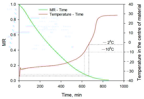 The procedure for determining MR and drying time for temperatures of −2 and −10 °C in the centre of the sample using variant 2 as an example.