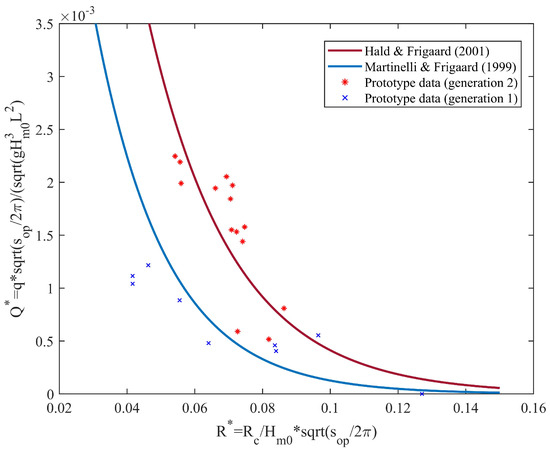 | Q | Non-dimensional average overtopping flow per crest meter width |