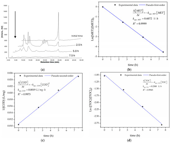 Table 1 summarizes the literature results related to the removal of MET using different treatment technologies. It can be observed that the related literature reveals the high removal efficiency of MET; however, it is worth pointing out that the treated volume used in many cases is very low, on the order of fractions of liters.