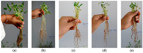 After determining the best operating conditions for the electro-oxidation of a MET aqueous solution, a phytotoxicity test was conducted before and after the electrochemical wastewater treatment containing MET, using mung bean seeds (Vigna radiata) because their fast-duration crop is suitable for various soil types [52]. For this purpose, 30 mung bean seeds were planted in four 250 mL glasses. Over ten days, each set of seeds was irrigated with 10 mL of distilled water, tap water, and MET aqueous solution before and after the electrochemical treatment. After ten days, the germination percentage and lengths of the shoot and root were measured. Also, the germination percentage was computed utilizing Equation (13) [53]:
