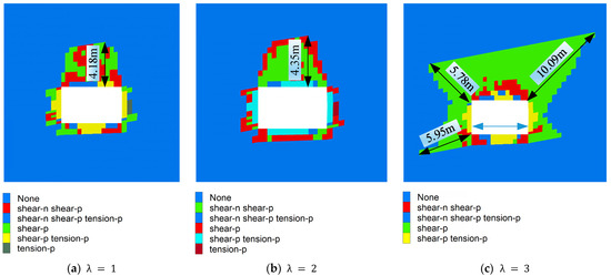 - Under the influence of tectonic stress, the deformation of the surrounding rock of the left side of the roadway is the largest, and the deformation of the left side is greater than that of the right side. The range of plastic zone near the roof and floor of roadway increases with the increase of tectonic stress, and the maximum range of the plastic zone is 10.09 m, which is mainly developed along the direction of coal seam.