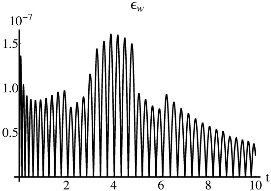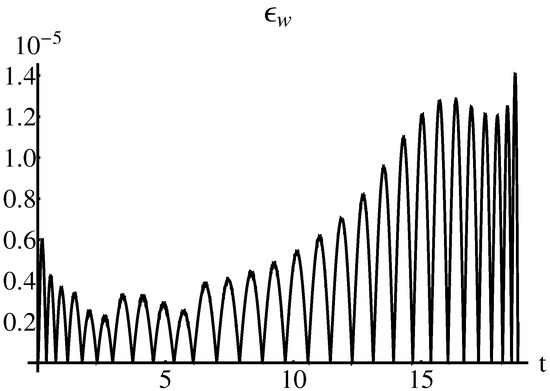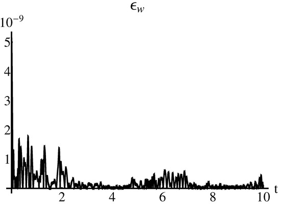 In Figure 7 is presented the variation of the difference in the last case for initial data , , , physical parameters , and index .