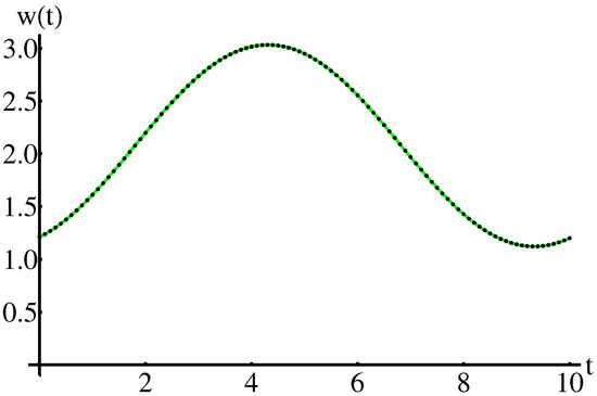 Also, in this case the accuracy of the applied method is highlighted by comparison between the functions: , respectively and corresponding numerical ones in Table 3 and Figure 5, respectively Figure 6.