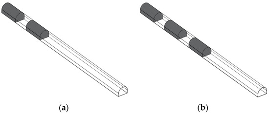 Layout of different numbers of explosion sources in the roadway. (a) Two-explosion source model and (b) three-explosion source model.