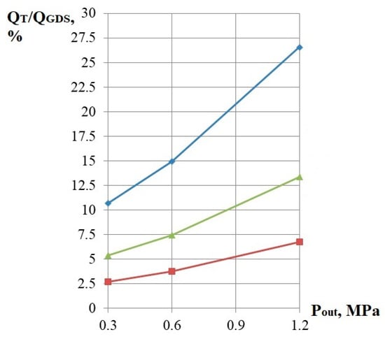 The gas mass flow correlation QT/QGDS on GDS 30 against outlet pressure Pout for turbogenerator electric capacity