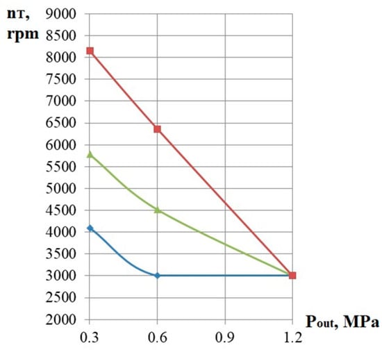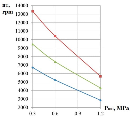 For an optimal performance of the vortex expansion machine, we should adjust the wheel revolution frequency to 3000 rpm. This simplifies the turbogenerator design: the turbine wheel may be installed on the generator shaft since there is no need for a lowering drive to connect the turbine shaft to the generator. It also reduces the machine payback, simplifies its operation, etc. Such an opportunity is provided for turbogenerators with Pout = 0.6 MPa and N = 20 kW; Pout = 1.2 MPa and N = 5, 10, 20 kW.