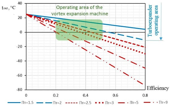 Article [] analyzes heat recovery on gas distribution stations and compares three types of expansion machines with different preheating principles. Low-expansion machines and gas heaters prove to be most efficient in heat recovery on gas distribution stations. However, the research does not discuss vortex turboexpanders. Paper [] introduces a hybrid gas turbine with a solar gas preheating via a parabolic trough system. Such a system is compared with a more conventional solar unit.