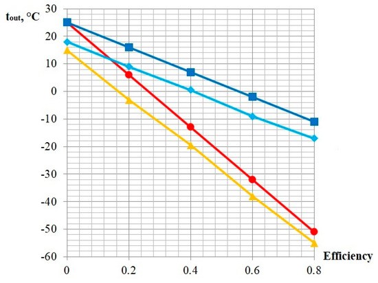 Table 4 and Table 5 show that the lower the outlet pressure is (high pressure difference), the higher the inlet temperature is (for Tout = 273 K). Gas inlet preheating (the difference between preheated and non-preheated gas with Tin = 278 K) is 51 °C for Pout = 0.3 MPa, 34 °C for Pout = 0.6 MPa, and 15 °C for Pout = 1.2 MPa.