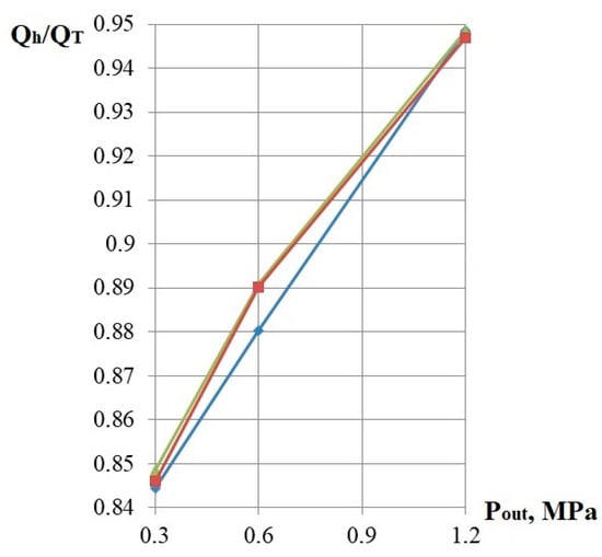We see that the Pout increase from 0.3 to 1.2 MPa leads to the following: