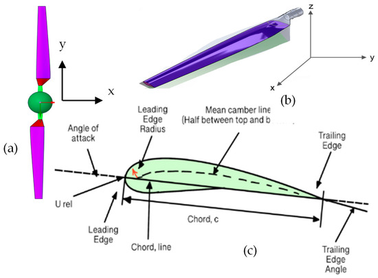 Case description: (a) NREL phase VI rotor; (b) NREL phase VI blade; (c) description of S809 airfoil design parameters.