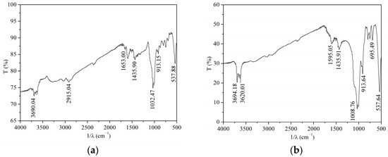 Fourier-transform infrared spectra: (a) the feed; (b) the tailings.
