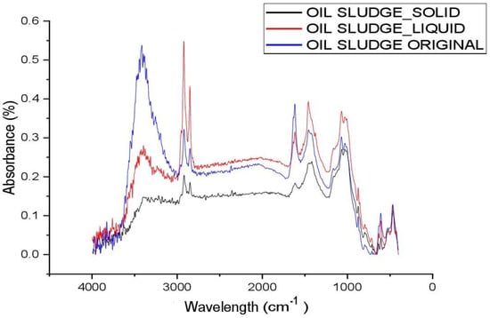 Fourier transform infrared (IR) spectroscopic analysis of the oil sludge samples was carried out on a PerkinElmer Spectrum (PerkinElmer, Shelton, CT, USA) 100 spectrometer [25] in the region of 600–4000 cm−1.