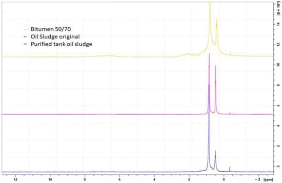 The spectra in Figure 5 are 1H NMR spectra of crude and treated tank oil sludge samples, in which two signals are visible in the aliphatic region, indicating that the oil sludge samples contain mainly this type of hydrocarbon while in the aliphatic zone.
