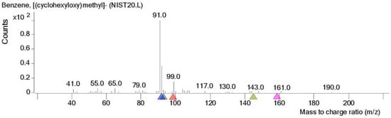 The distillation products were analyzed using gas chromatography with mass spectrometric detection (Agilent 7890A/5975C, USA). Analysis conditions were as follows: sample volume, 0.2 µL; sample injection temperature, 250 °C, without flow splitting. Separation was carried out using a DB-17MS chromatographic capillary column (Agilent, Santa Clara, CA, USA) with a length of 30 m, an internal diameter of 0.25 mm, and a film thickness of 0.25 μm at a constant carrier gas (helium) rate of 1 mL/min. The chromatography temperature ranged from 30 °C to 180 °C, with a heating rate of 5 °C/min. Detection was performed in SCAN mode m/z 10–850. Agilent MSD ChemStation software (version 1701EA) was used to control the gas chromatography system [22], record and process the results, and obtain data. Data processing included determination of retention times and peak areas as well as processing of spectral information obtained using a mass spectrometric detector. To interpret the obtained mass spectra, the Wiley 7th edition and NIST’08 libraries were used (the total number of spectra in the libraries is more than 550,000). Group analysis of samples by gas chromatography with mass spectrometric detection was carried out according to the calculation method [23].