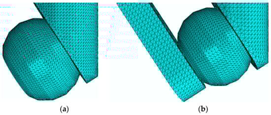 The roller sliding bearing of PDC–cone hybrid bit is intended for a working environment of heavy load, low speed, and random impact force. The force load and working conditions are quite complicated, and a formula cannot be used to calculate its force load and contact stress. Along with the development of computer technology, finite element simulation technology has been widely used in geological exploration, petroleum exploration, drill bit design, and other fields [22,23,24,25]. In this paper, the finite element method is used to simulate the unilateral and bilateral support structure, and the stress distribution and strain are obtained.