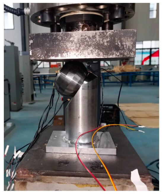 The mounted cone support structure is placed on the support platform. The position of the cone is adjusted so that the highest point on the cone is aligned with the center line of the loading system pressure plate, and the height is adjusted by the loading system so that the highest point of the cone is about 1 mm from the pressure plate. The channel of the signal acquisition system is cleared, and sampling is started. Then, the system is loaded at a speed of 10 kN/min (as shown in Figure 17) until the system is loaded to 100 kN and unloaded. Experimental data are recorded and displayed through the data acquisition system to complete the experiment. The experimental plan is shown in Table 4.