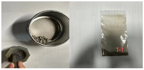 The X-ray diffraction (XRD) samples were all low-permeability sandstones from Well X in the western South China Sea. Six groups of samples were selected from different depths of the reservoir for grinding and then filtered by 200-mesh and 300-mesh screens; six groups of powder samples were obtained, which were recorded as samples 1, 2, 3, 4, 5, and 6. The sample preparation process is shown in Figure 1.