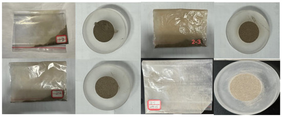 Figure 5 shows the removal of organic matter from the samples from left to right. Carbonate and calcium cement were removed from the sample, calcium and chloride ions were neutralized and cleaned, and the samples were dispersed.