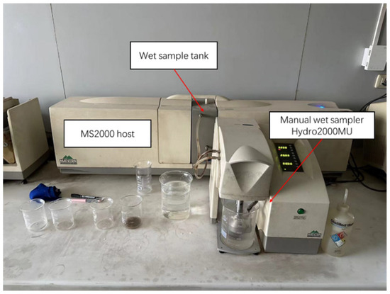 Since 1981, the Mastersizer series of laser diffraction particle size analyzers have been successfully developed and improved by the Malvern Company in England using small-angle laser scattering technology. They are widely used in medicine, stone oil, water mud, oil paint, coatings, mineral product processing, powders, and military fields [30]. The Mastersizer 2000 (Mastersizer 2000 is a British company Malvern Instruments Limited, Malvern, UK) is a perfect combination of advanced laser diffraction technology and highly practical conventional particle characterization, and it has become the best choice for particle size analysis in laboratories around the world. The instrument provides fully automated measurements of powders, suspended substances, and emulsions, and it produces reliable measurements according to standardized procedures.