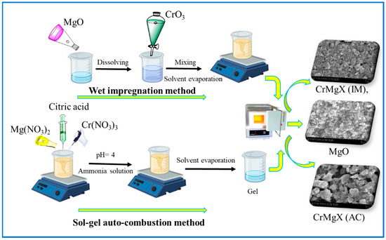 The sol–gel method allows for better control of the microstructure and particle size, stabilizing the mononuclear chromyl species. In addition, this method creates proper morphology with uniform coating and dispersion of chromium over MgO support.