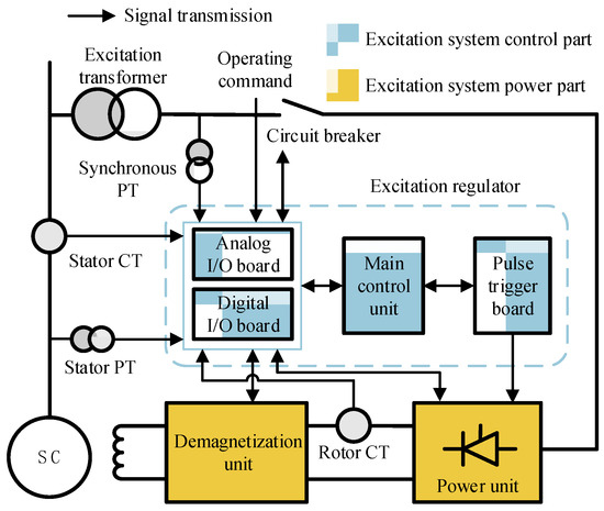 With the rapid development of ultra-high-voltage direct current (UHVDC) transmission, issues such as insufficient dynamic reactive power reserve at the sending and receiving ends, as well as weak voltage support capability, have become increasingly prominent [1]. In this context, new large-capacity synchronous condensers, compared to power electronic reactive power compensation devices, have been widely used due to their strong voltage support capability, wide reactive power regulation range, and large short-circuit capacity [2], which can satisfy the system’s dynamic reactive power demands and maintain grid voltage stability. As the excitation system is the core control component of the synchronous condenser system [3], it is of great significance to study its fault diagnosis methods to achieve rapid and accurate fault location and timely troubleshooting to maximize the reactive power compensation capability [4] of the synchronous condenser.