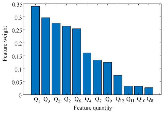 Following preprocessing, feature selection aims to extract key feature quantities for fault diagnosis. The variance threshold and Spearman correlation coefficient methods [27] are used to eliminate irrelevant and redundant feature quantities. The ReliefF method [28] is then utilized to select the key feature quantities with the top-ranked feature weight scores, enhancing the efficiency of the fault diagnosis.