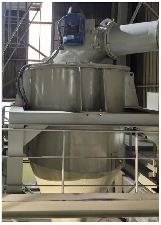 Powder is currently extensively utilized in various industries, including construction materials, the chemical sector, medicine, and artificial stone production. A crucial component of the powder preparation process is the technology used for powder classification [1]. There are many different classification principles [2], such as gravitational, centrifugal, dry, and wet classification. Currently, air classifiers are widely used in powder material production. An air classifier is an important factor in the powder-producing industry that determines the material sizes used. The selection of the type of air classifier depends on the requirements of the classification products, as well as technological and economic factors. For example, a simple air classifier-cyclone has some advantages, such as simple operation, low investment and operating costs, and effectiveness in classifying coarse particles. Unlike cyclones, rotor-type classifiers provide good classification efficiency and can classify products with high fineness. They have a wide range of capacities and can adjust the operating parameters to control the product’s fineness. It is possible that commercially available air classifiers may not entirely meet practical requirements. To improve classification performance and address specific industrial problems, a variety of air classifiers have been developed. Powder production efficiency is directly affected by the performance of the classifier. Therefore, many projects have been carried out through extensive theoretical research, including other aspects of air classifiers. These efforts have yielded significant findings that form the foundation for optimizing classifiers.