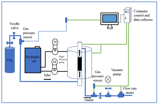 By using the equipment in Section 2.2, we conducted the test for the influence of water on gas-bearing coal with cyclic stress. In the process of the experiments, the gas we introduced is CH4, which is used to simulate the flow of coalbed methane in coal specimens. The detailed test procedures are as follows: