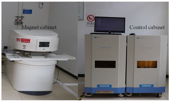 In the course of the experiments, a thermal–fluid–solid coupling triaxial servo seepage testing apparatus for gas-bearing coal was applied to conduct the experiments of cyclic loading axial stress. The specific parameters for the experimental apparatus can be consulted in the research of Jiang et al. [25] and Yin et al. [20], and the experimental apparatus is shown in Figure 1. To investigate the effects of water on the internal structure of gas-bearing coal with cyclic loading, the pore distribution of coal specimens before and after cyclic loading experiments was measured by using a nuclear magnetic resonance analysis system. The nuclear magnetic resonance analysis apparatus is presented in Figure 2.