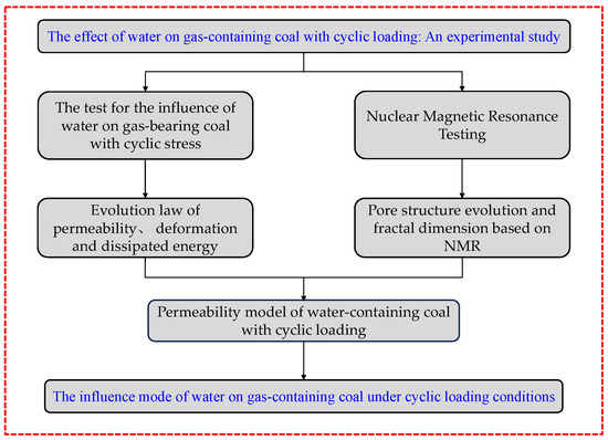 As the global economy is developing rapidly, various forms of energy consumption have increased dramatically, so it is imperative to develop deep resources [1,2]. In the deep mining process, the coal often undergoes repeated loading under the action of the mining stress field, which result from roadway excavation and support, periodic roof pressure and other engineering activities [3,4,5,6,7]. The gas flow characteristics and mechanical property for coal seams with the effect of cyclic stress are important factors affecting the safety of coal mining, and are also important references for studying underground mine disasters in coal mines [8,9]. At the same time gas and water are also widely found in coal seams. The presence of water and gas not only affects the mechanical properties of coal, but also leads to many underground mine disasters, for instance, rock burst, and mine water bursting [10,11,12,13,14]. During coal mining, the combined action of cyclic stress and water for gas-containing coal may stimulate dynamic instability events. So it is important to further analyze the influence of water for gas-bearing coal with cyclic stress, which includes seepage, deformation, and damage properties of gas-bearing coal. It will be helpful to recognize and understand the mechanical property and gas flow law of gas-bearing coal in the deep mining process, which will provide important guidance for coal and gas simultaneous extraction during the deep mining coal.