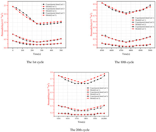 By using the experimental data, we verify the permeability model with cyclic loading, and the parameters we used are determined in the lab. The model parameters obtained by matching data are shown in Table 5.