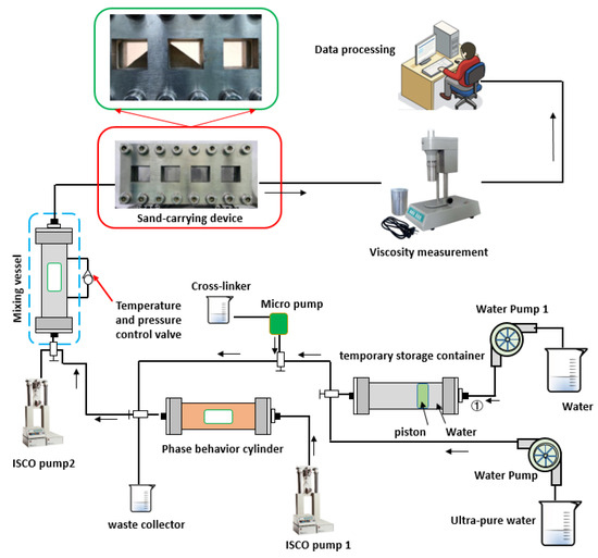 Sand-carrying experimental device and schematic diagram of water-based fracturing fluid.