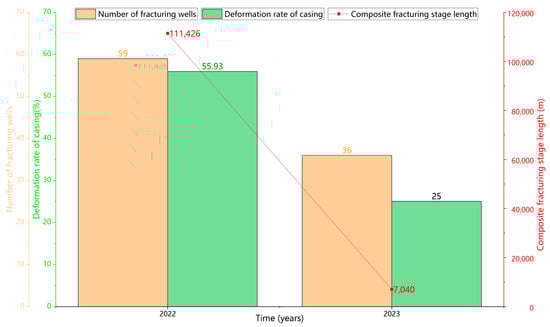 The analysis showed that the total fluid volume of a single stage was the main engineering factor affecting casing deformation, followed by the injection rate. In this paper, the analysis results based on field data are consistent with the conclusions on fracture propagation based on the effect of the rate on casing deformation in risk evaluation technology. Thus, control of the total fracturing fluid volume of a single stage is the main method for controlling casing deformation.