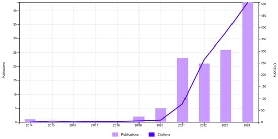 Publications (121) and citations. TS = (“CLUSTERING”) AND TS = (“XAI” OR “EXPLAINABLE ARTIFICIAL INTELLIGENCE”).