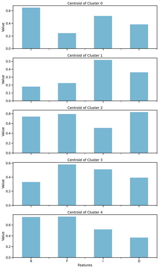 The Analytic Hierarchy Process (AHP) was employed to prioritize and weigh seven key criteria for each cluster: Recency of Interaction (RI), Frequency of Contact (FC), Customer Support Quality (CS), Customer Importance (CI), Interaction Duration (DI), Effective Resolution (ER), and Reactivation Incentives (IR). Using pairwise comparisons, the relative importance of each criterion was calculated, producing normalized weights for each cluster (Table 4).