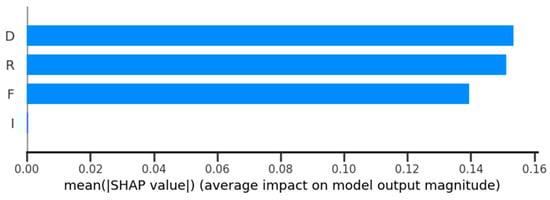 where is a subset of features, excluding ; is the total set of features {recency, frequency, importance, and duration}; is the model prediction using the features in plus feature ; and is the model prediction using only the features in .