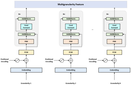 are the feature vectors of k granularities. The attention mechanism can highlight important granularity features and suppress irrelevant information by weighting the features of different granularities, thus achieving more precise and effective feature fusion. Finally, the fused features are fed into the feed-forward layer , which maps the integrated feature vectors to the prediction space to generate the final prediction results