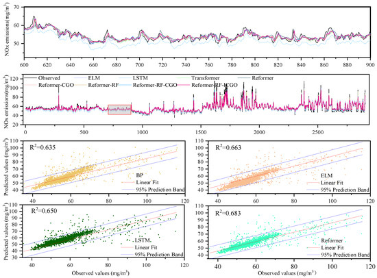 Finally, this result further demonstrates the superiority and stability of the Reformer model in predicting NOx. It also demonstrates that ICGO can effectively optimize the parameters, and RF can effectively optimize the model.