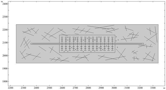 18]. Three pairs of secondary fractures are evenly distributed along both sides of the main hydraulic fracture. The formation angle is 45°, and the lengths are varying of about 5–15% of the main hydraulic fracture [