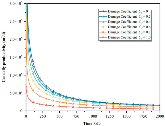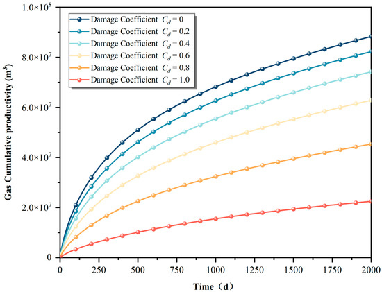 The changes in the cumulative shale gas productivity with varying damage coefficient values are illustrated in
