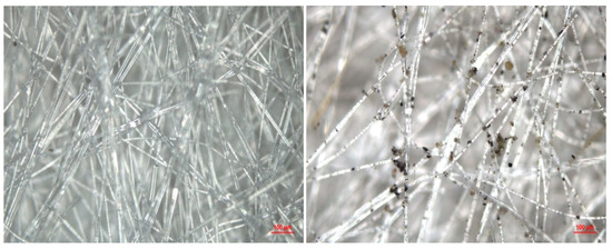 The filter was categorized into upper, middle, and lower sections based on the orientation of the windward face. Figure 4 displays the outer and inner metallographic images of the upper section of the cylindrical air filter. A significant amount of dust is clearly visible on the outer surface of the filter, while the inner surface remains exceptionally clean. This pattern is consistent throughout the filter mesh, indicating that this type of intake filter functions as a surface filter. During the testing process, no significant contamination was observed on the inner surface of the filter, thereby confirming its overall integrity.