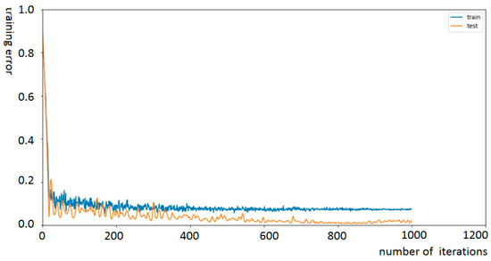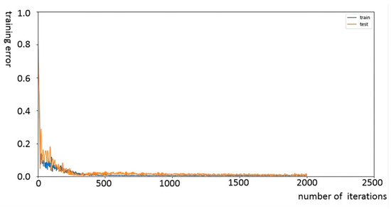 Training error curve with the number of iterations.