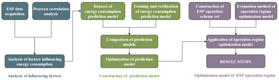The main process of the data-driven energy consumption prediction and operating regime optimization of the ESP system is shown in Figure 2.