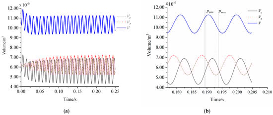 Volume variations lead to changes in density, which subsequently influence pressure variations. Consequently, the densities within the expansion and compression chambers are as follows: