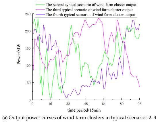 where represents the number of uncertain scenarios for the output power and spot prices of the wind farm cluster at multiple time scales; is the probability of the joint scenario of the output power and spot prices of the wind farm cluster occurring under the uncertainty scenario in the typical scenario.