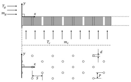 where and represent the dimensionless coolant and mainstream temperatures at the -th row of holes, respectively. denotes the minimum coolant temperature, which is lower than the local coolant temperature at each row of film holes. represents the maximum mainstream temperature, which is higher than the mainstream temperature at each film hole location.