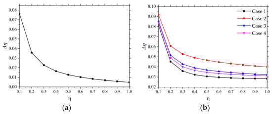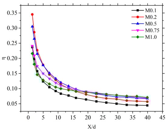 Based on the above assumptions, when the number of hole rows is , the adiabatic cooling efficiency at the wall can be expressed by Equation (1).