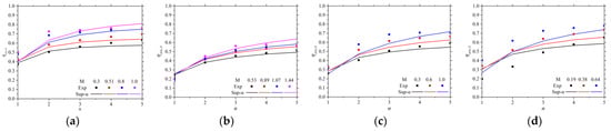 The blowing ratio of the film is the most significant factor affecting the prediction accuracy. In flat plate film cooling predictions, Sasaki et al. [] showed that the Sellers model can effectively predict the cooling performance at lower blowing ratios but tends to overestimate the results at slightly higher blowing ratios. Meng et al. [] confirmed this conclusion in their study on two rows of holes.
